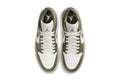 O Air Jordan 1 Low Olive Green combina a tradição do streetwear com uma paleta sofisticada. O cabedal em couro liso apresenta tonalidades de verde-oliva contrastando com branco puro e detalhes em preto, criando uma composição equilibrada e versátil. O icônico logo Wings bordado no calcanhar e o Swoosh lateral reforçam a identidade clássica da linha Jordan. A entressola branca e o solado em borracha verde complementam o visual com um toque contemporâneo.